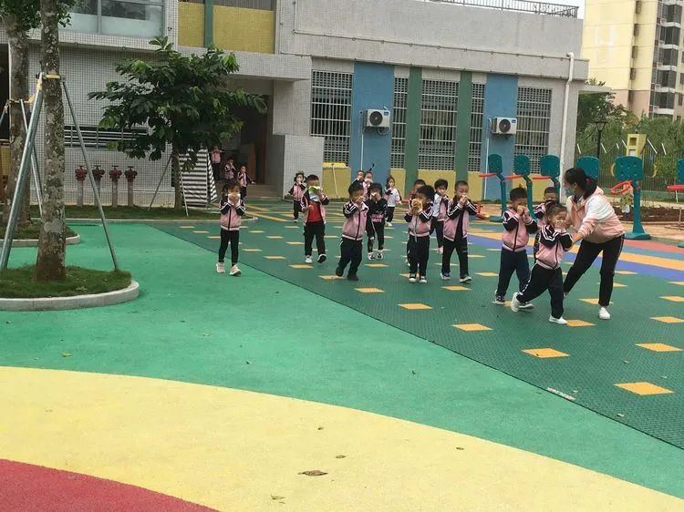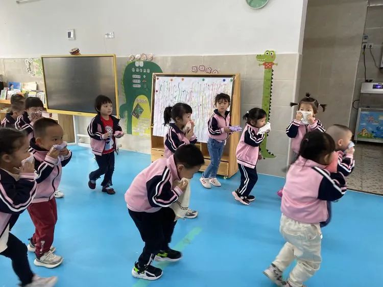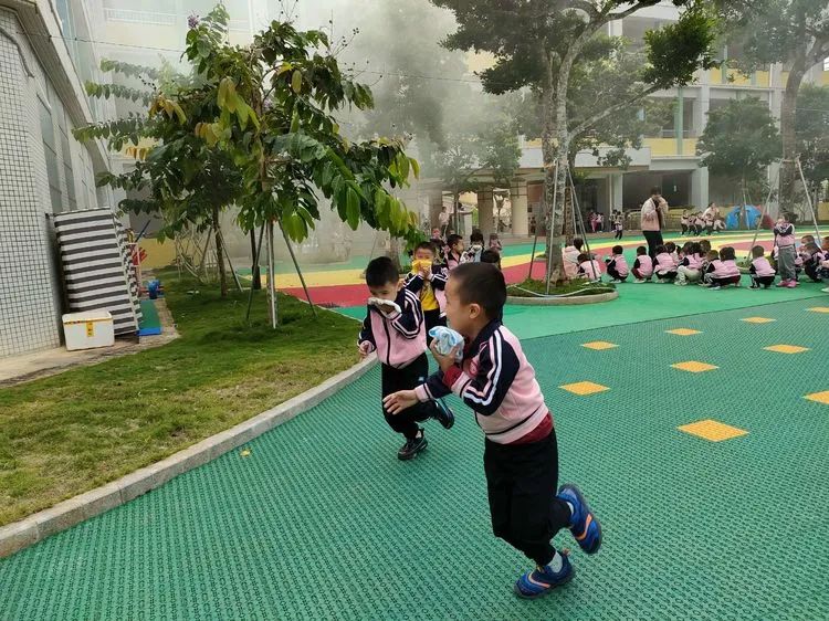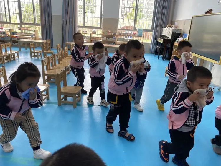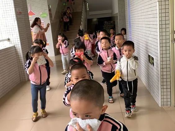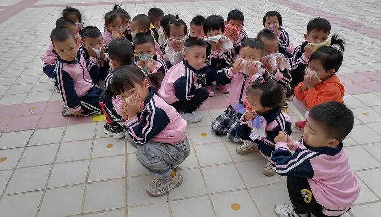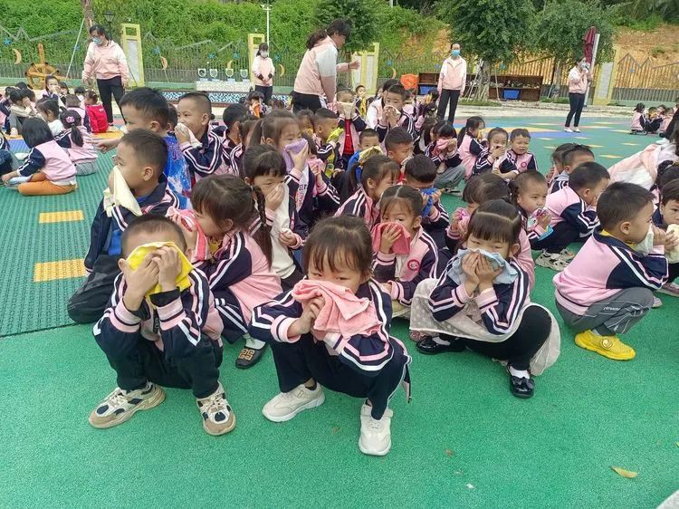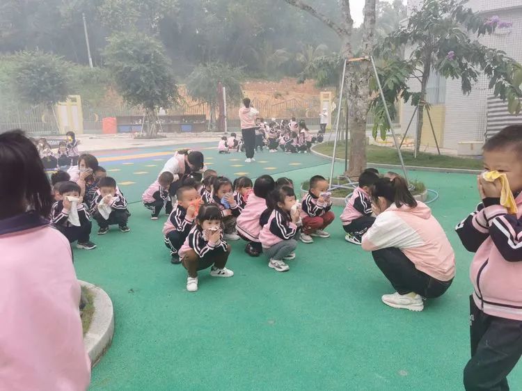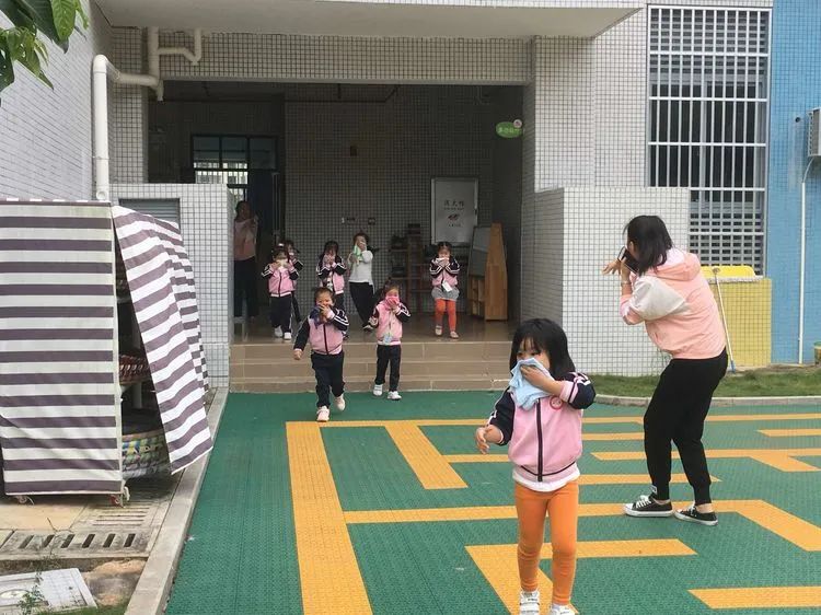 上午9:40分,伴随着警报声响起,各班老师听到警报后迅速带领活动中的孩子们捂着口鼻,弯腰扶墙有序地按规定路线到达指定的逃生安全区域。