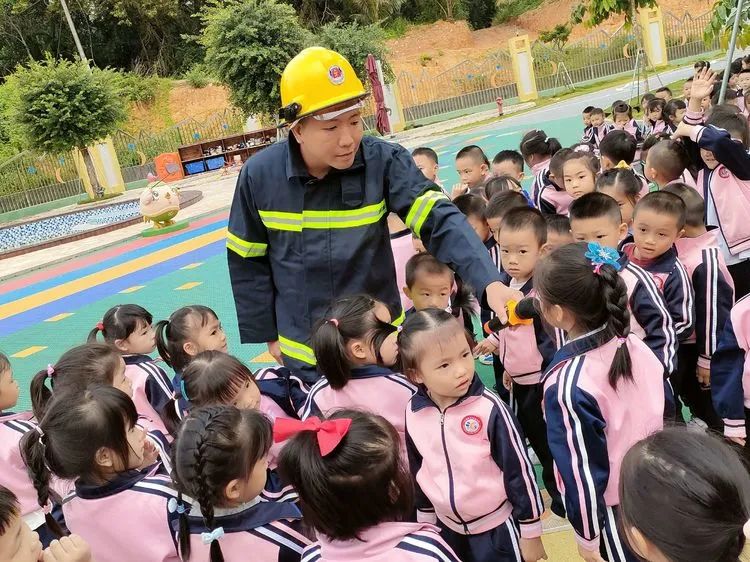 幼儿园消防员吴永能老师教育幼儿发生火灾怎样逃生以及如何避免火灾的发生。