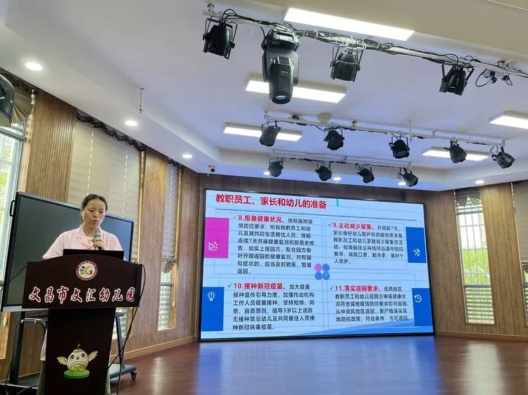 李秀芬副园长解读《文昌市文汇幼儿园开学工作演练方案》。