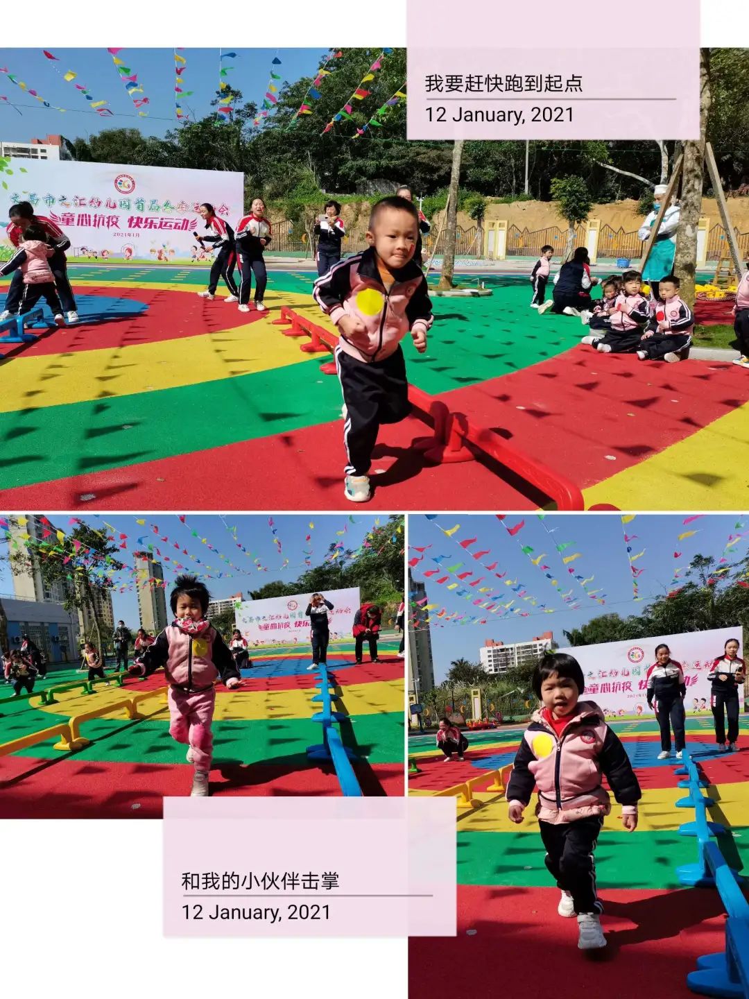 在杏杏老师可爱而又激动的开场白中,我们的小小运动员排着整齐的队伍,喊着响亮的口号昂首挺胸地走来。