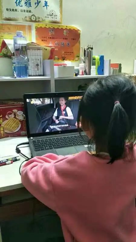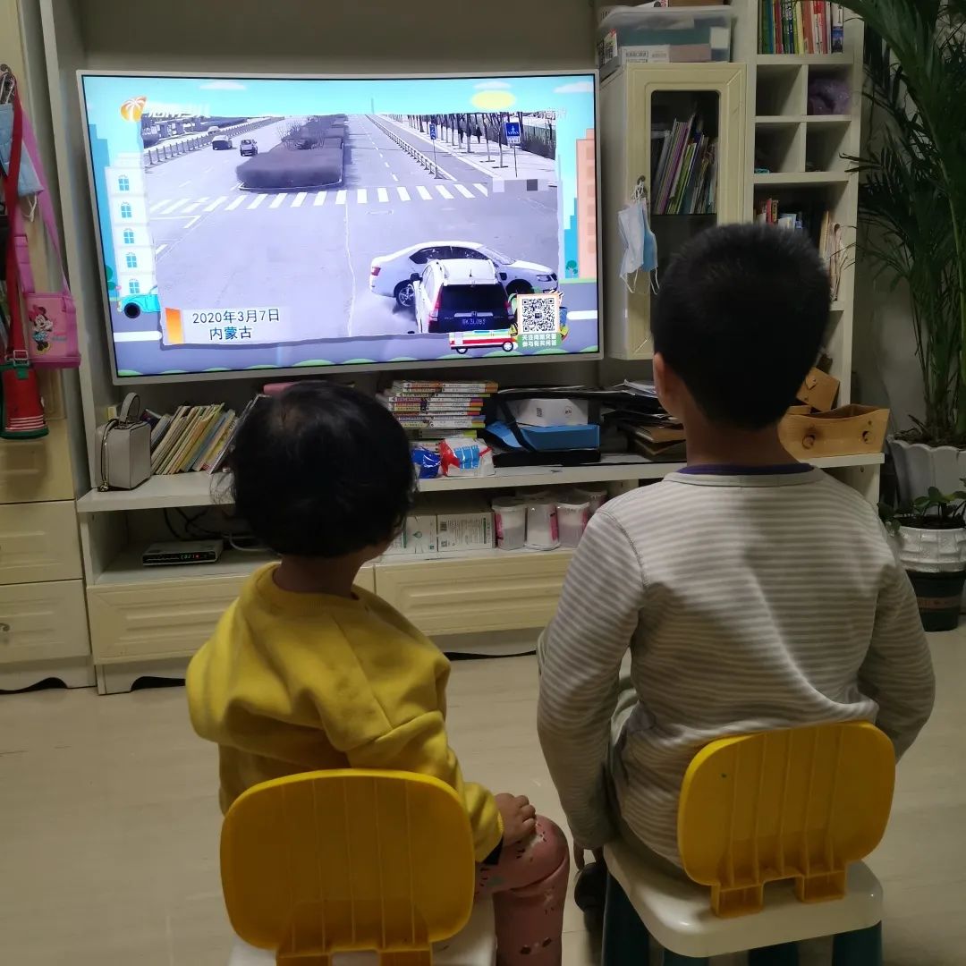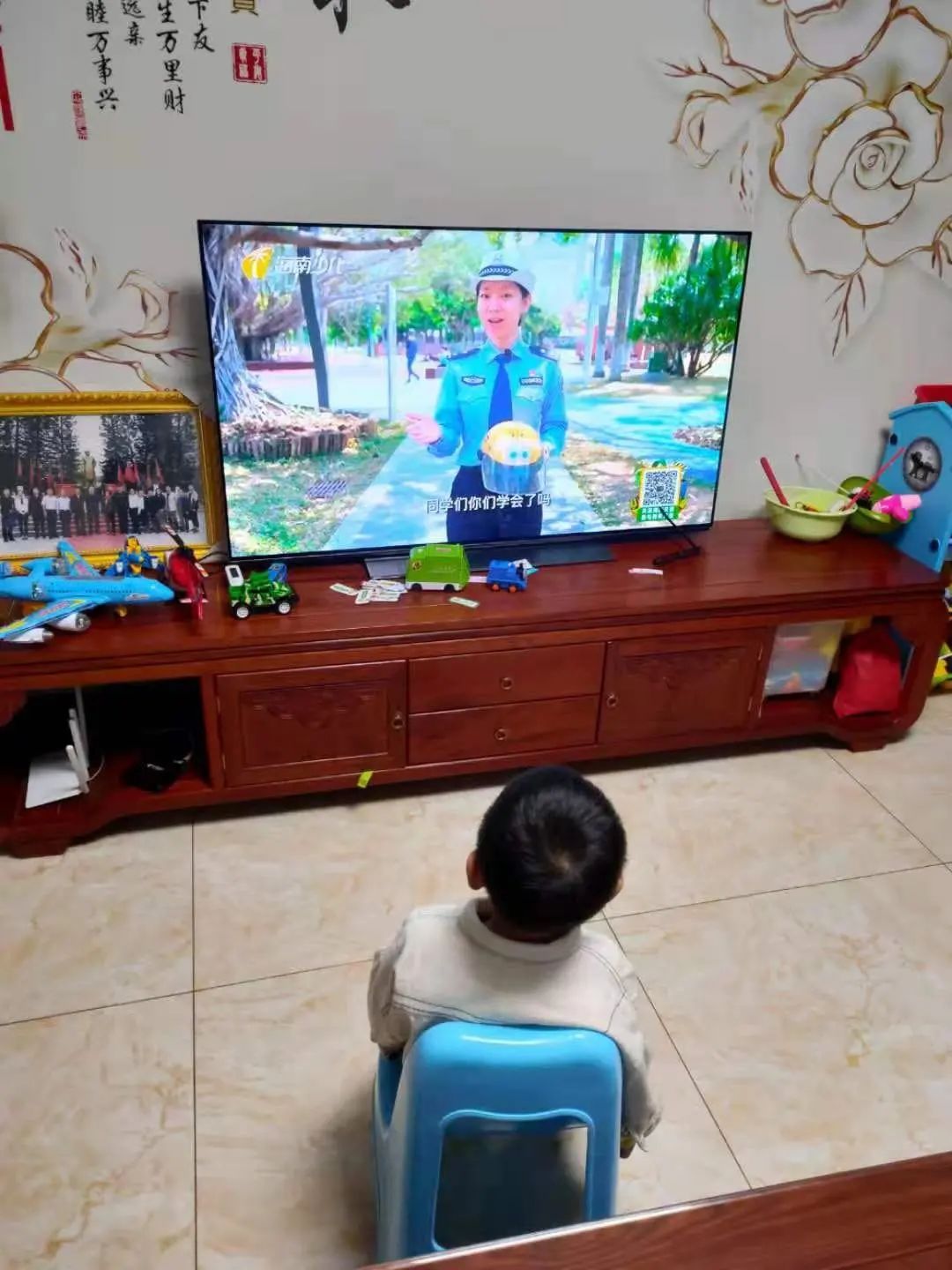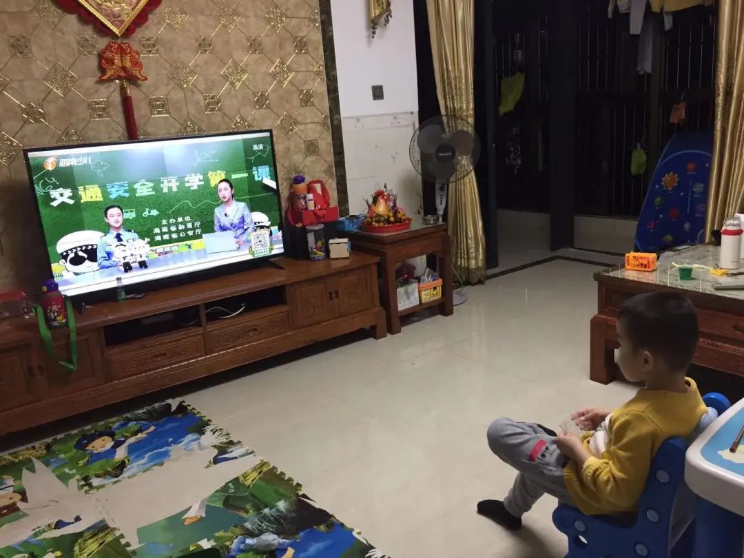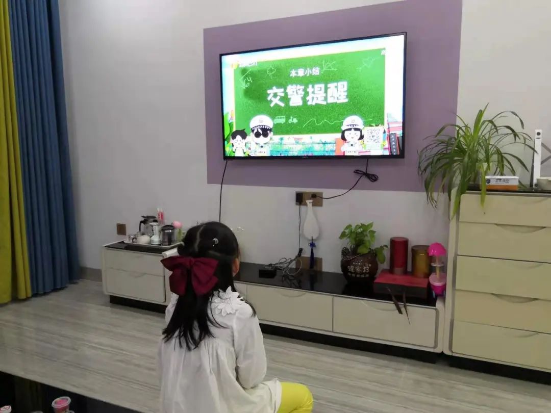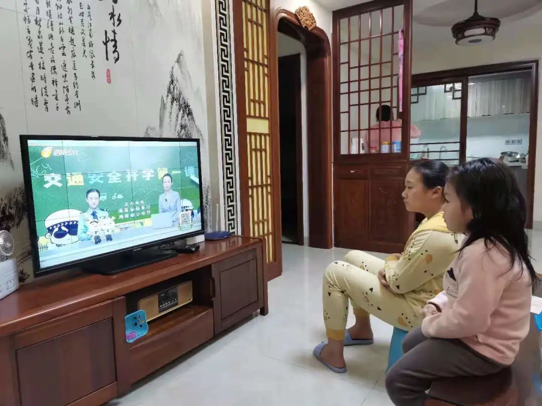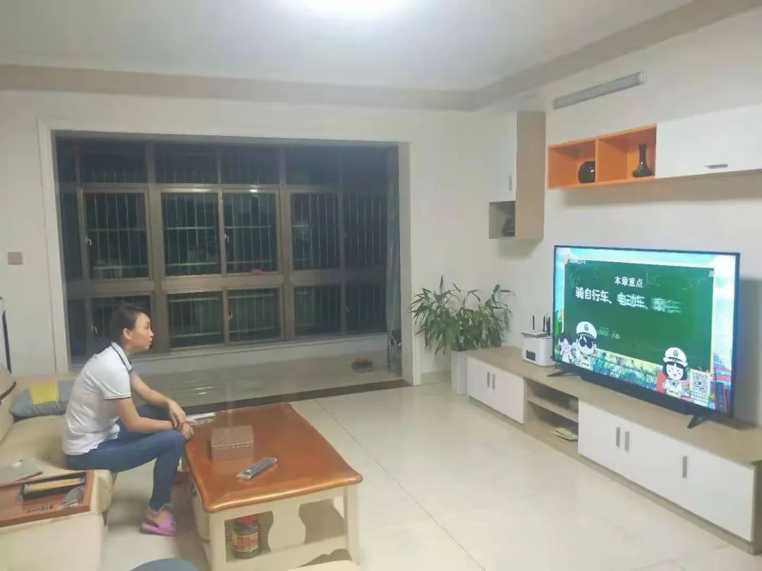 教师也在家里同时观看《交通安全开学第一课》。交通安全,人人有责!