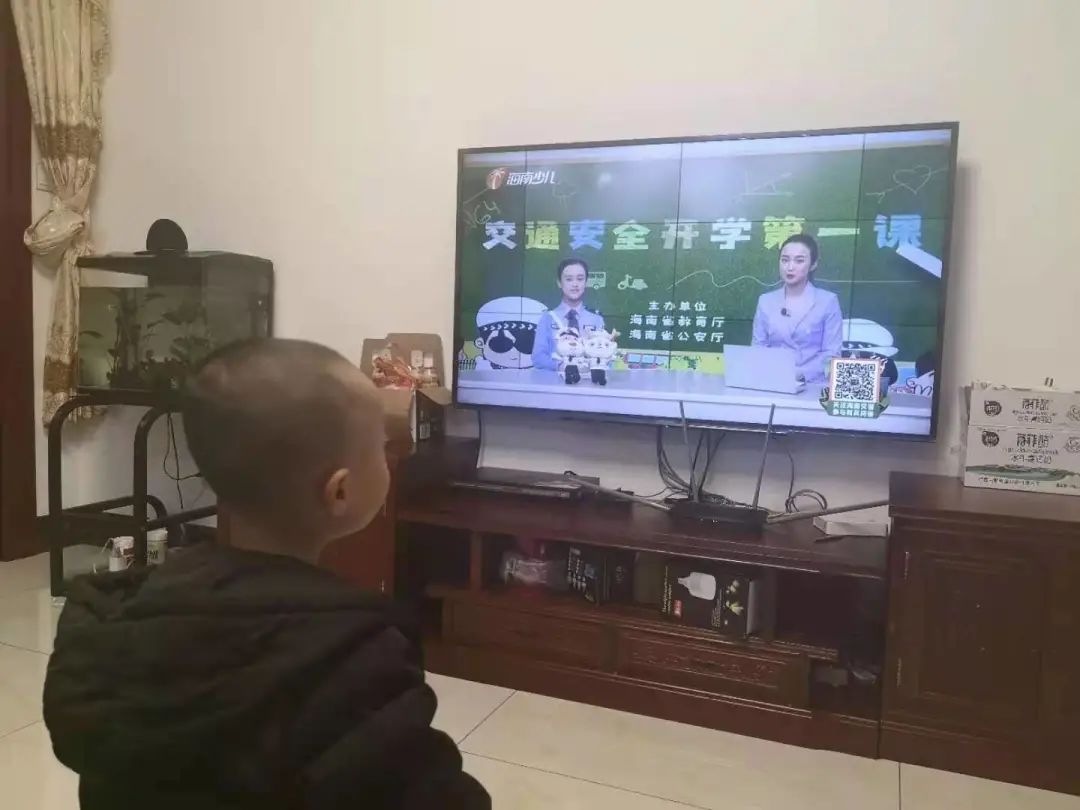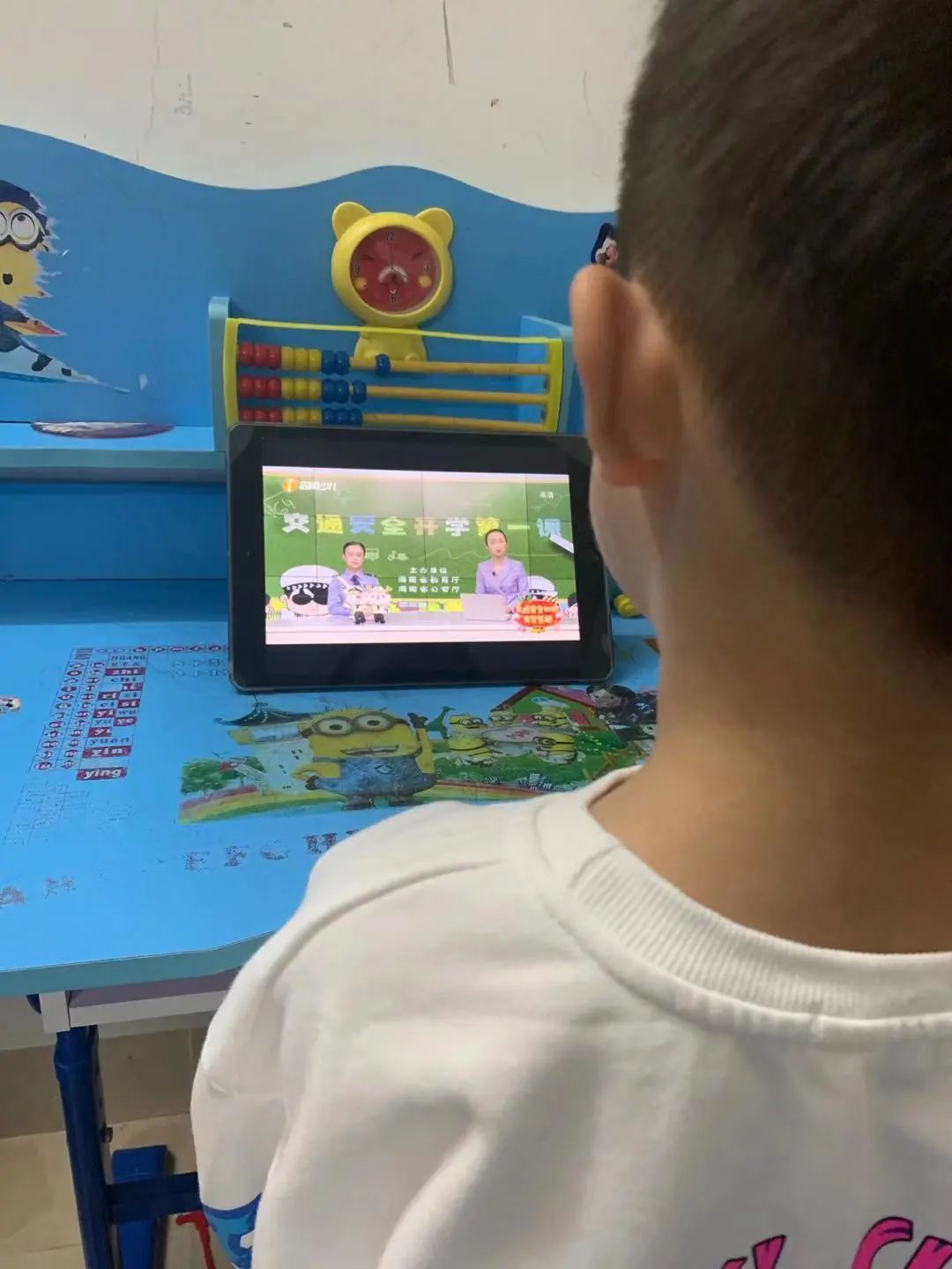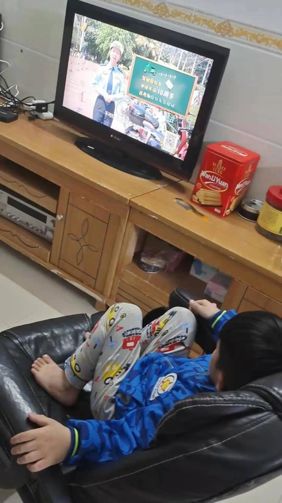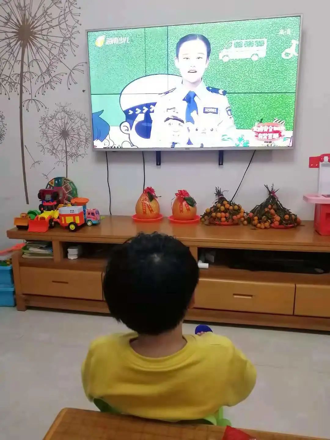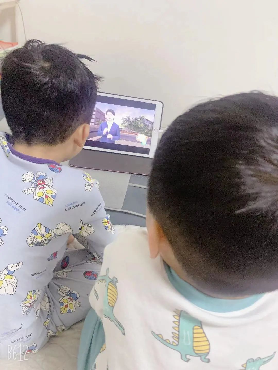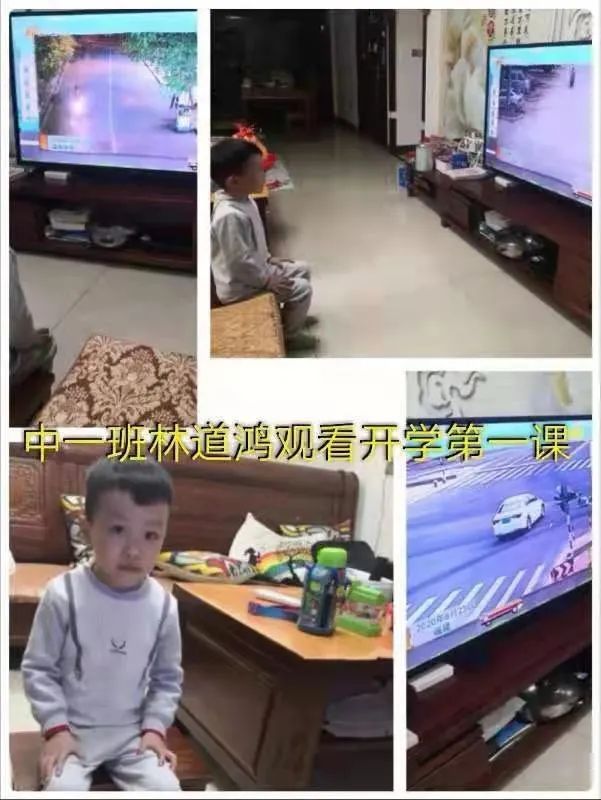 教师也在家里同时观看《交通安全开学第一课》。交通安全,人人有责!