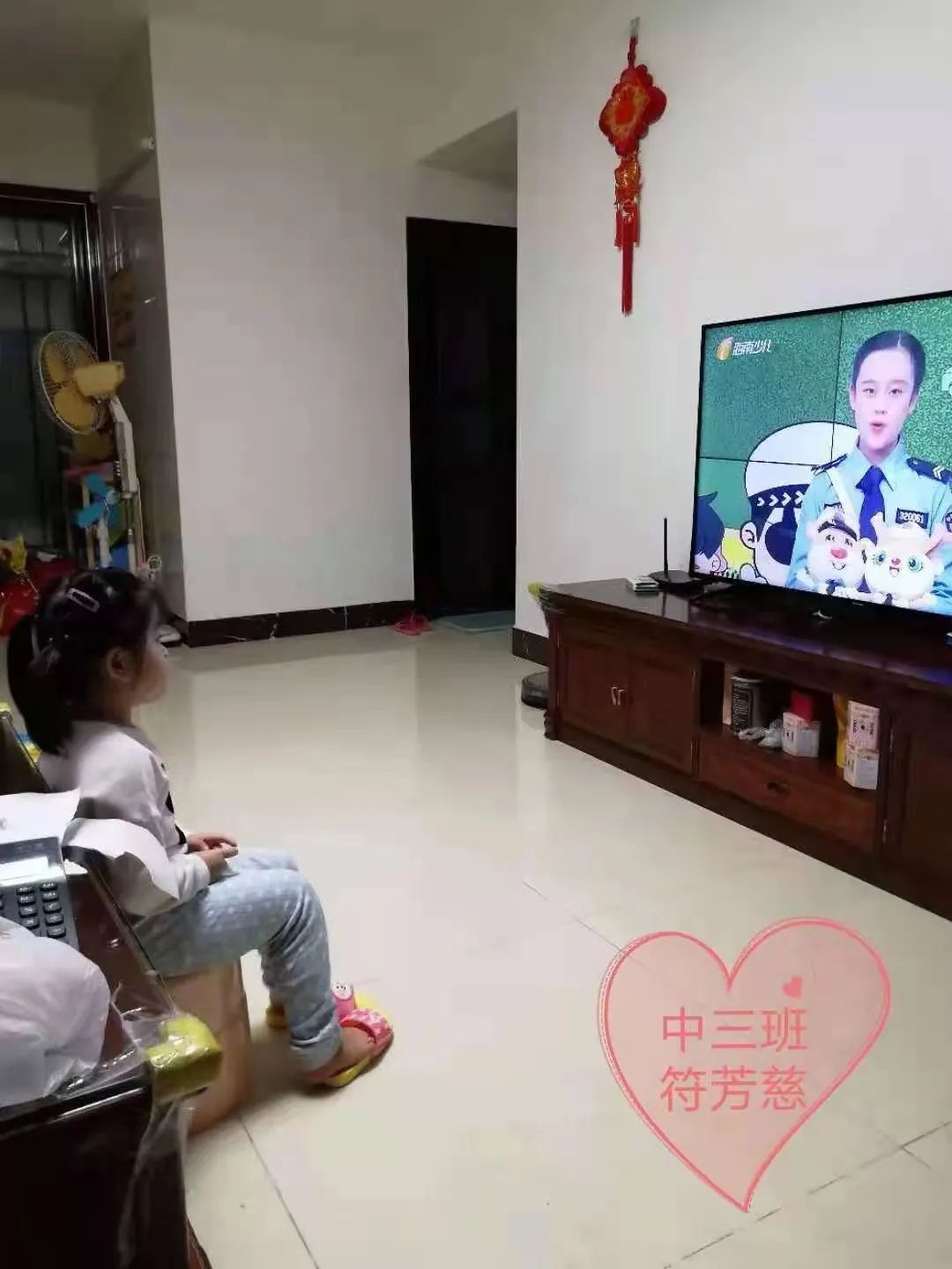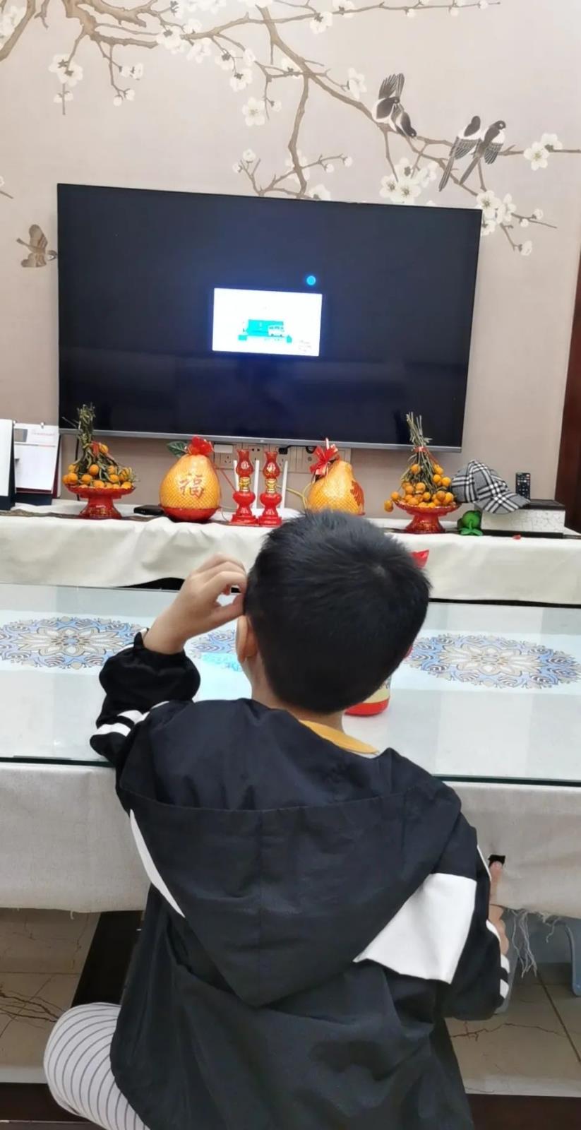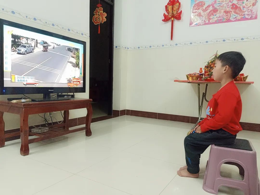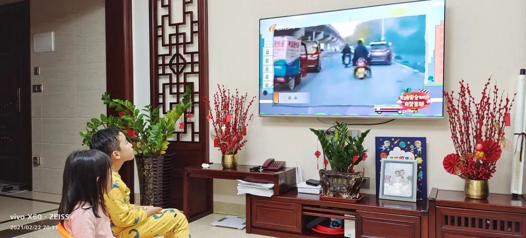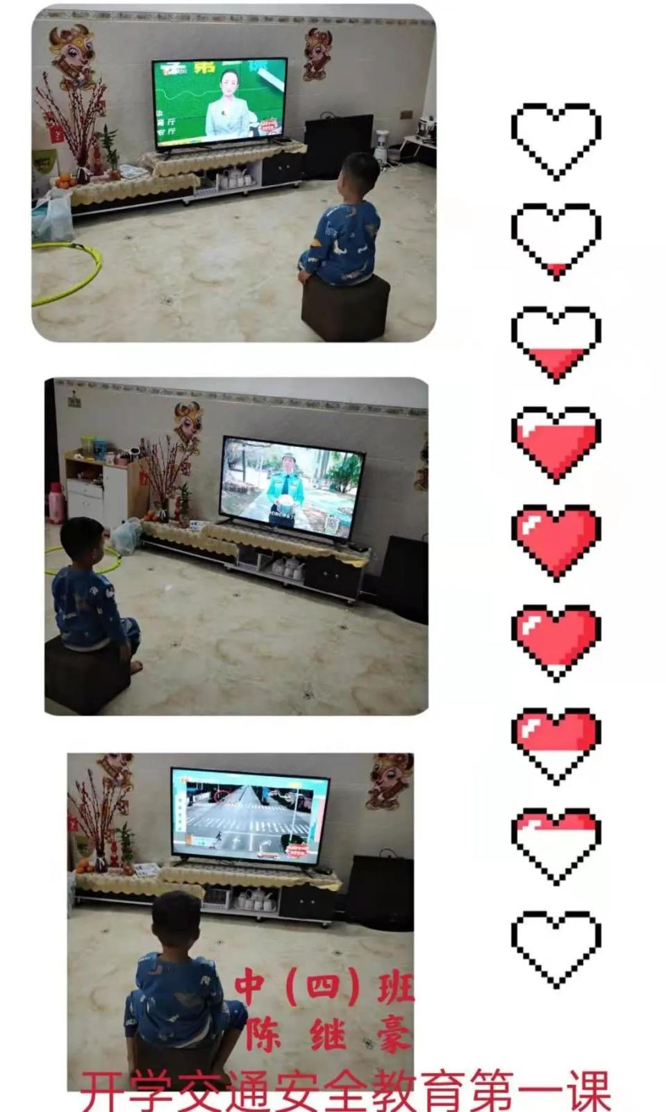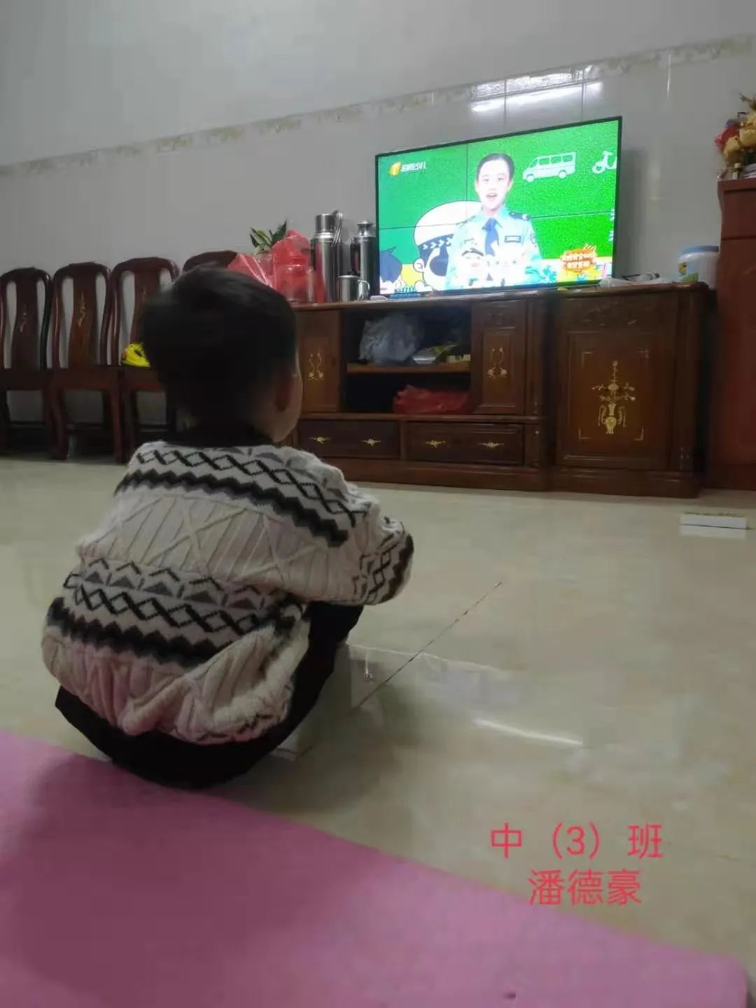 教师也在家里同时观看《交通安全开学第一课》。交通安全,人人有责!