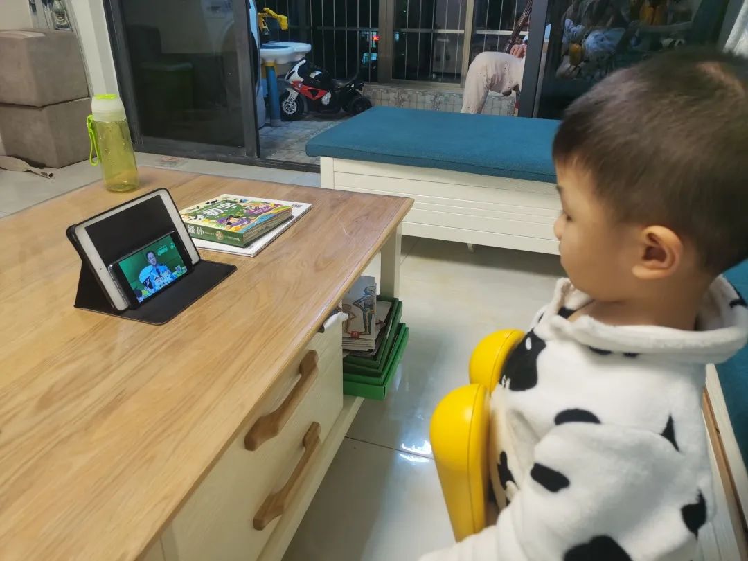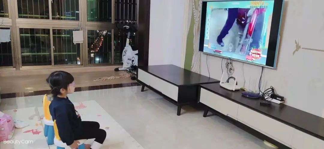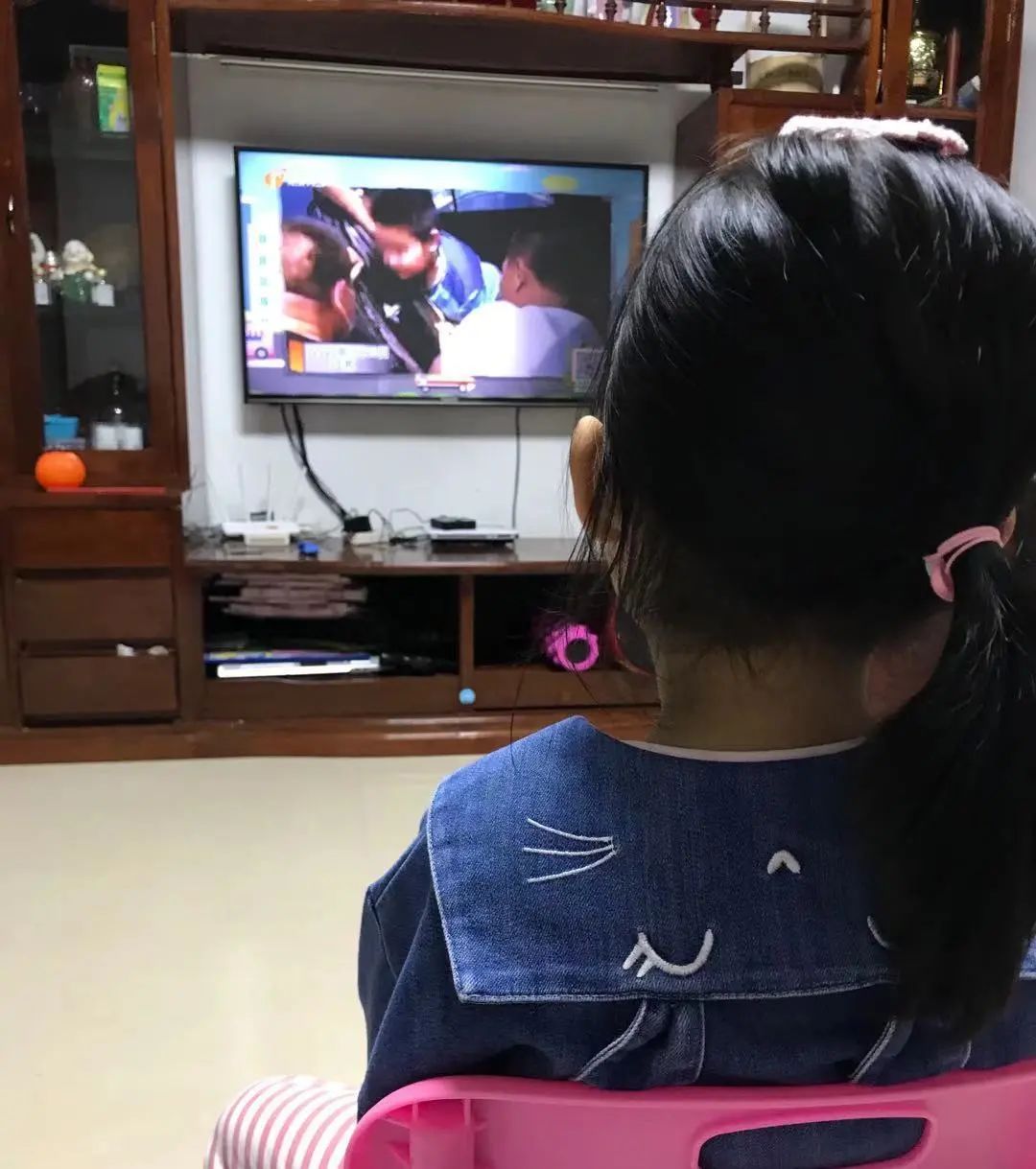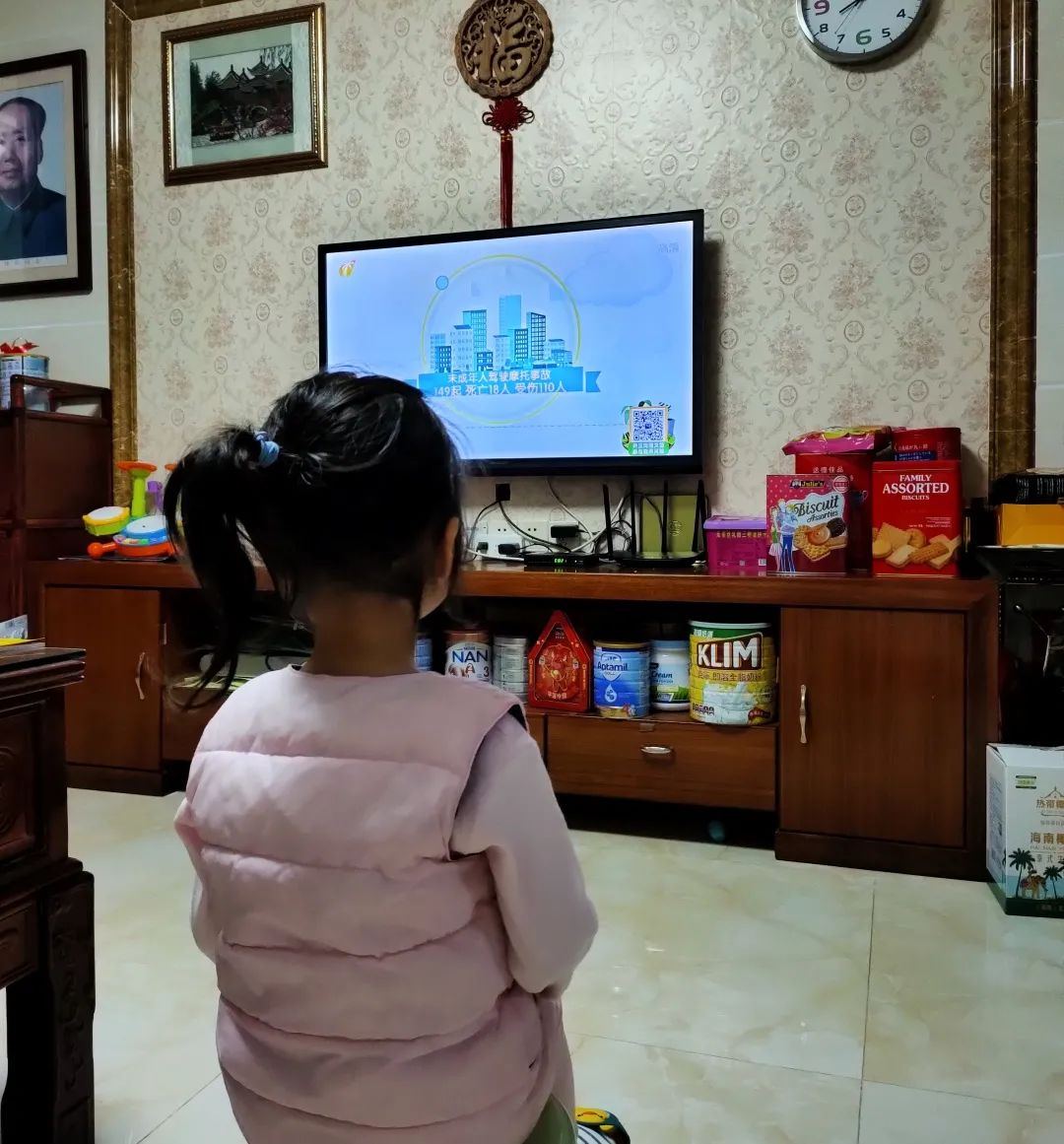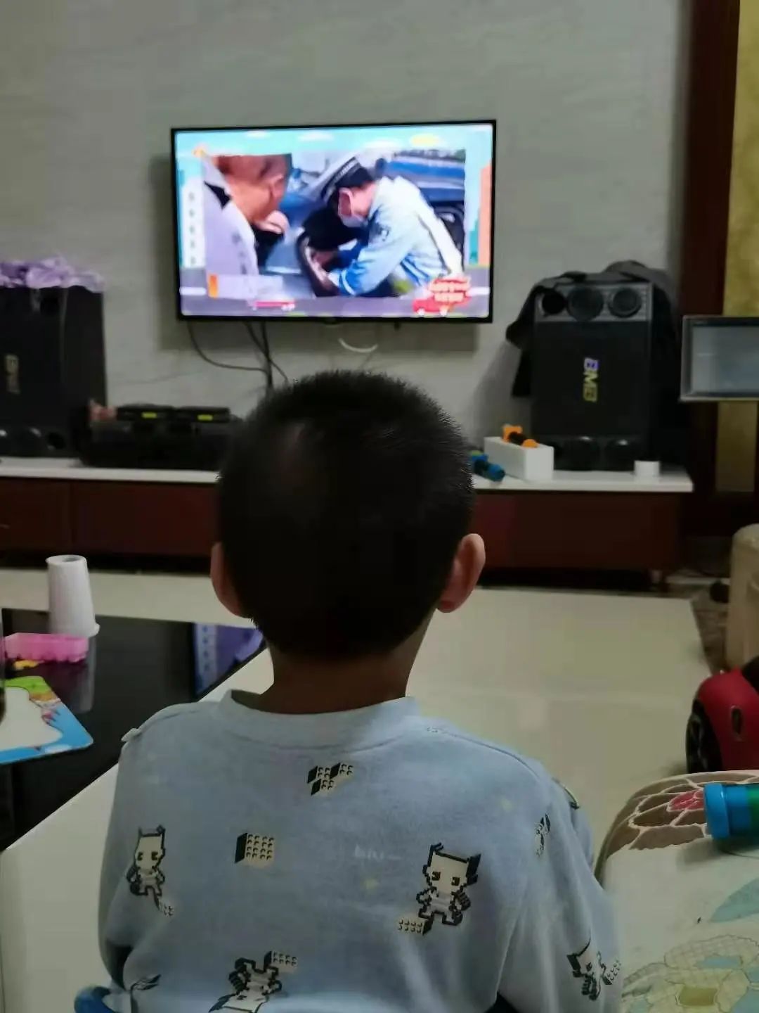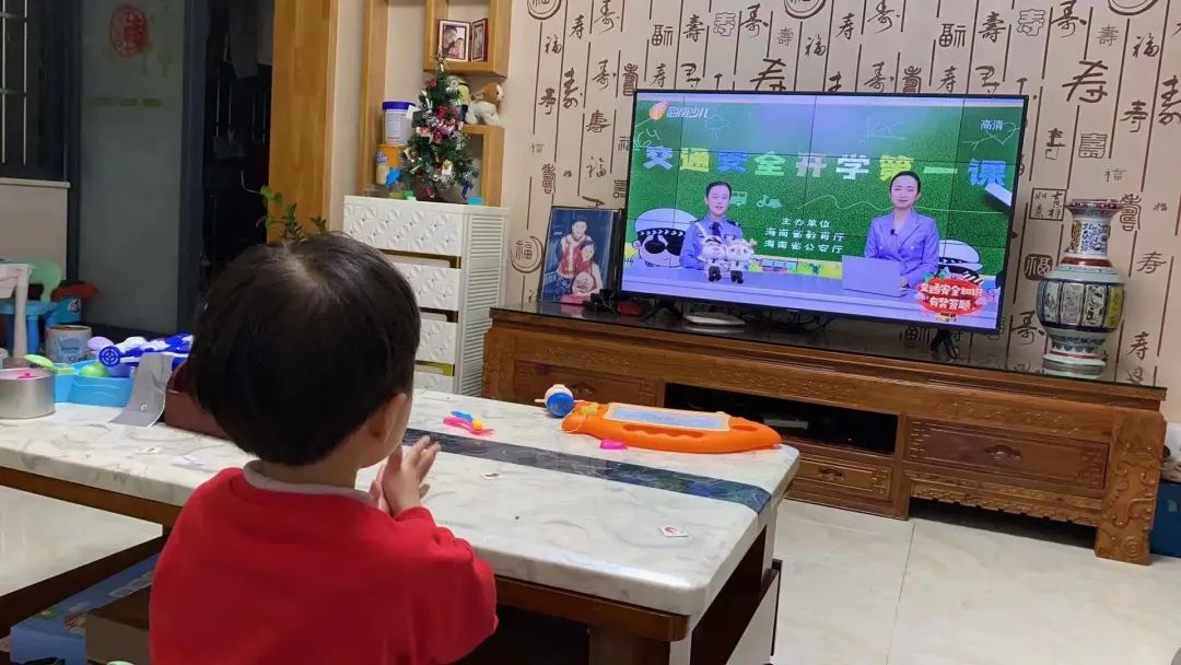 教师也在家里同时观看《交通安全开学第一课》。交通安全,人人有责!