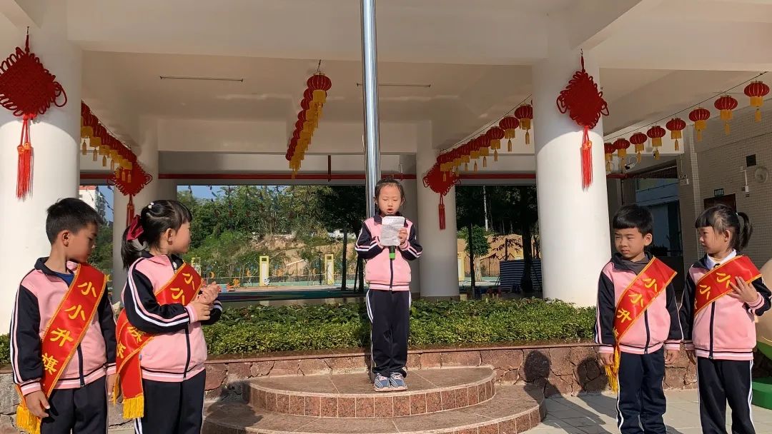 接下来是大一班的张明怡小朋友在国旗下讲话的主题是《幼儿园里的安全》,对在园中生活的各个细节进行详细讲解。